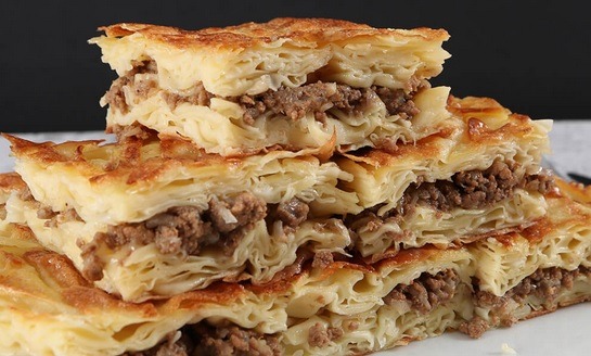 Ova turska pita s mljevenim mesom pravi je primjer domaćeg, slojevitog peciva koje kombinira hrskavu koricu i mekanu, sočnu unutrašnjost. Jogurt u tijestu daje dodatnu mekoću, dok maslac i ulje stvaraju prepoznatljive slojeve.