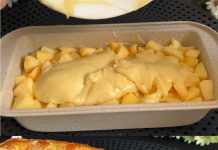 Započnite postavljanjem temperature pećnice na 170°C. Zatim uzmite tepsiju 21x11x6 cm (2 lb) i namastite je, a zatim obložite.