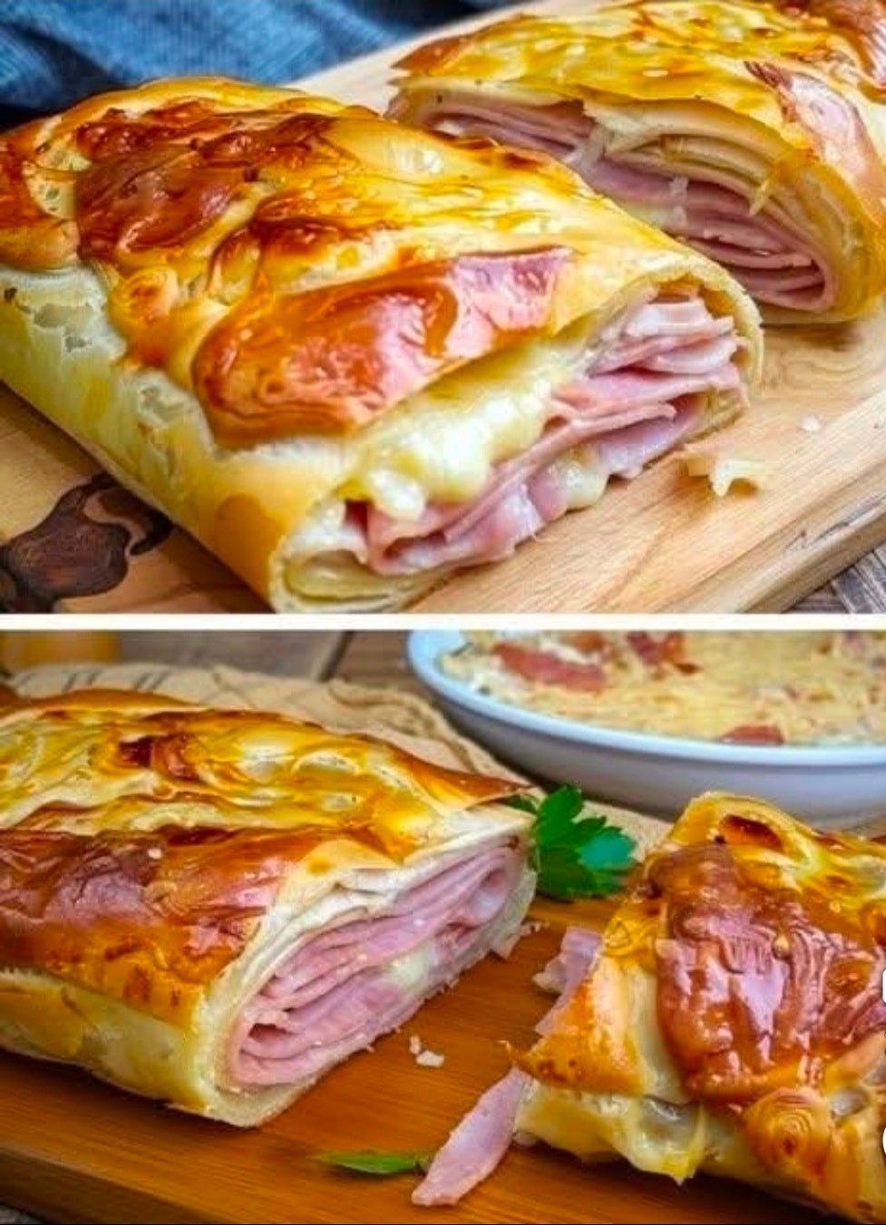 Uživajte u ovoj iznimno ukusnoj štrudli napravljenoj od lisnatog tijesta, šunke i sira.