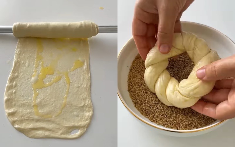 Svako pecivo umočite u ovu smjesu, a zatim u obilnu količinu tostiranog susama.