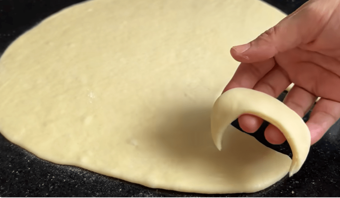 Korak 6: Na površini lagano posutoj brašnom, razvaljajte tijesto na debljinu od otprilike 1 centimetar.