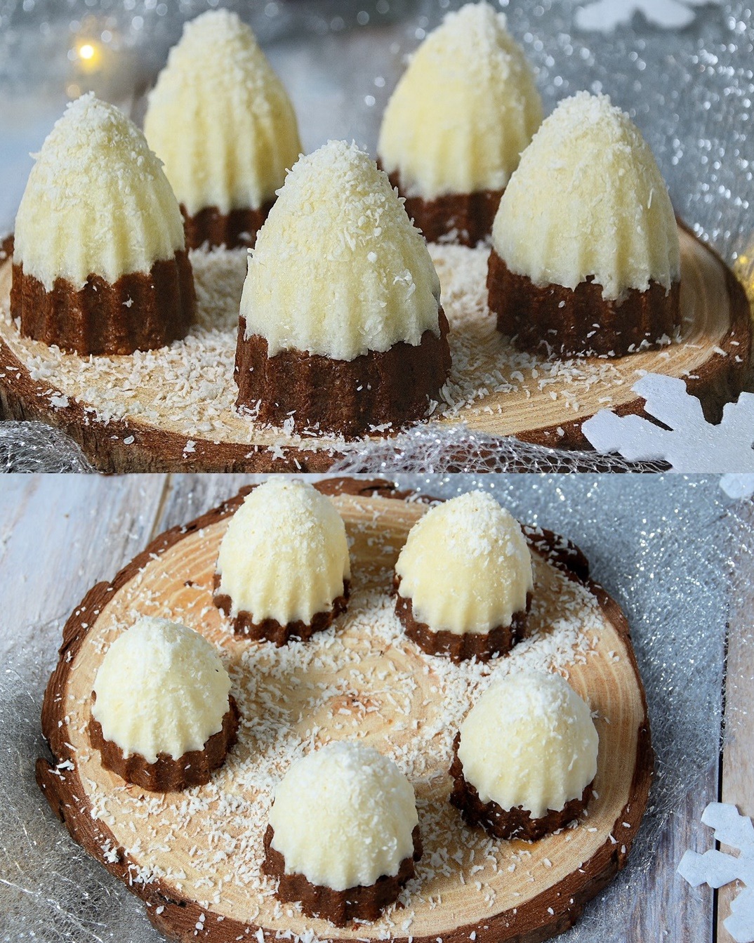 Postoje kolači koje pravimo zato što su ukusni, postoje oni koje pravimo zato što su brzi, ali postoje i oni koji u sebi nose čaroliju praznika — i upravo takve su Snežne kolibe. Ovaj mali dvobojni kolač, nježnog kokos ukusa na vrhu i bogatog čokoladno-rum temelja na dnu, ne osvaja samo nepce već i oči.