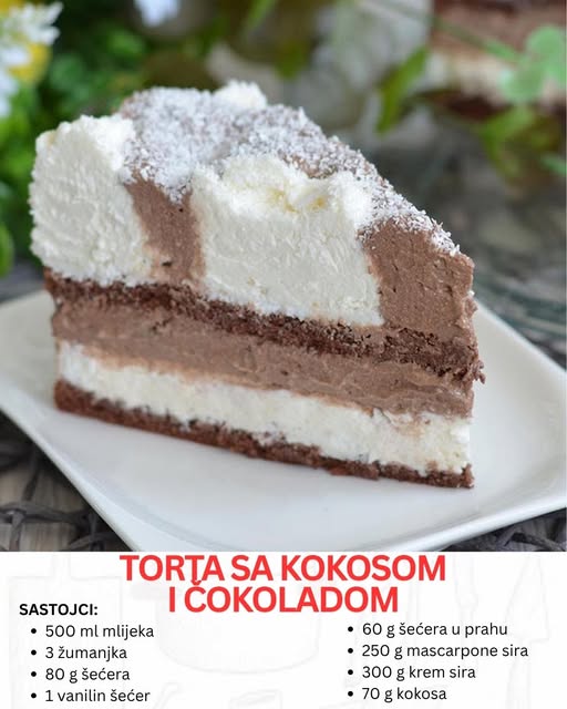 Torta od kokosa i čokolade je odličan primjer kako klasični sastojci mogu stvoriti izvanredan desert pun okusa i tekstura. Ova torta je kremasta i lagana, a opet bogata i sočna, stvarajući savršenu mješavinu okusa koji se skladno stapaju u svakom zalogaju. Njena priprema nije komplicirana, ali se na kraju isplati. Idealna je za rođendane, praznike ili jednostavno za one koji žele počastiti sebe i druge nečim posebnim. Iskoristite je!