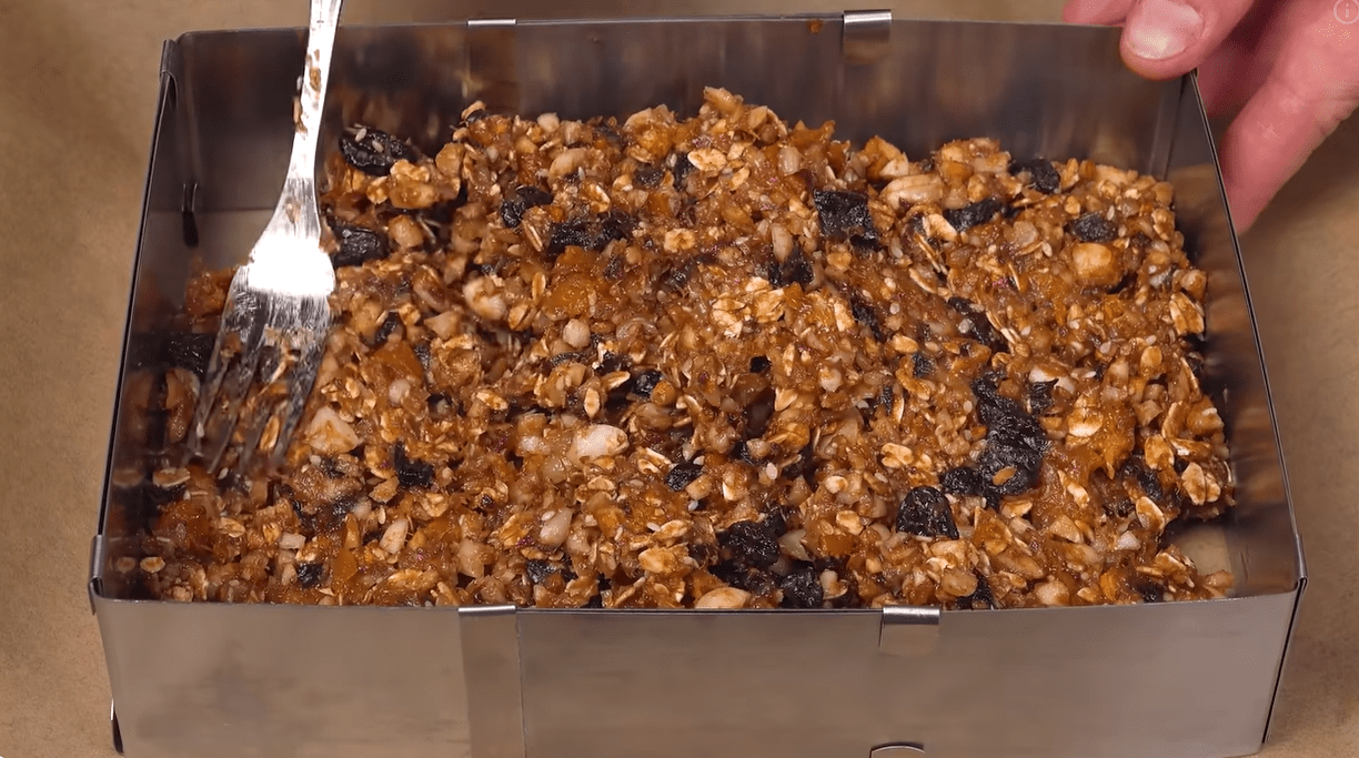 Dobijenu smjesu ravnomjerno utisnite u pleh obložen papirom za pečenje, koristeći špatulu ili dlanove kako biste je lijepo izravnali.