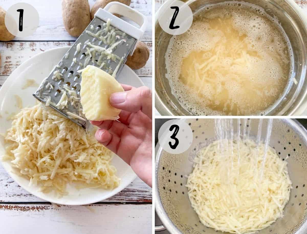 Cijeđenje i sušenje: Nakon nekoliko minuta namakanja, krompir dobro ocijedite. Rukama ili pomoću čiste kuhinjske krpe istisnite što više tečnosti kako bi smjesa bila što suša.