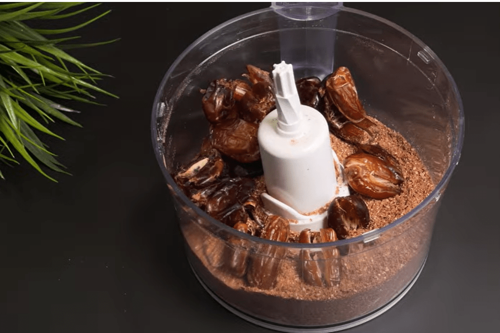 Najprije zagrijte rernu na 175 °C kako bi bila spremna za pečenje. U blender stavite hurme, kakao i orahe te miksajte dok ne dobijete ujednačenu i glatku smjesu. Ta baza daje intenzivan čokoladni okus i prirodnu slatkoću.