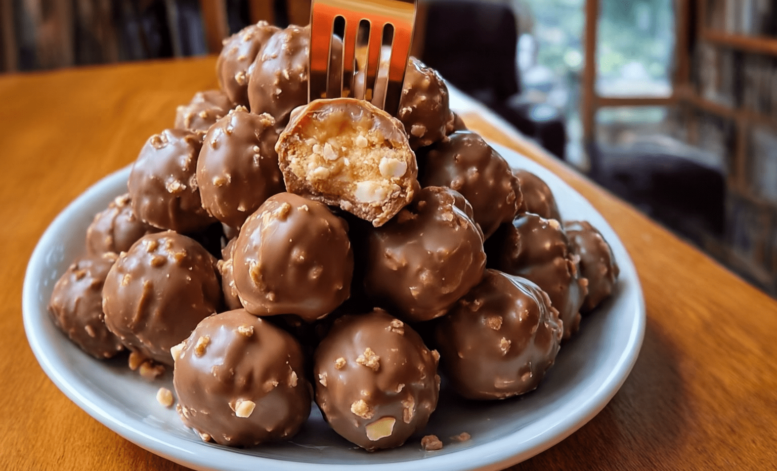 Učinkovito koristeći ohlađene kuglice, vilicom za umakanje svaku umočim u rastopljenu čokoladu. Nakon što lagano otresem višak čokolade, pažljivo vraćam svaku premazanu kuglicu na lim za pečenje. Za uglađen izgled, mogu dodati još mrvica Butterfingera na vrh prije nego što se čokolada potpuno stegne.