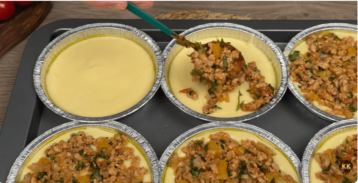 Prvo je potrebno skuhati oguljeni krompir u blago posoljenoj vodi dok ne omekša. Kada je gotov, ocijedite ga i dobro izgnječite kako biste dobili glatki pire. U većoj posudi pomiješajte pire s jajima, mlijekom, brašnom i praškom za pecivo te sve sjedinite u gustu smjesu koja će poslužiti kao baza za mini pizze. Pećnicu zagrijte na 170°C i lagano nauljite kalupe ili pleh, a zatim rasporedite smjesu tako da dobijete male okrugle podloge.