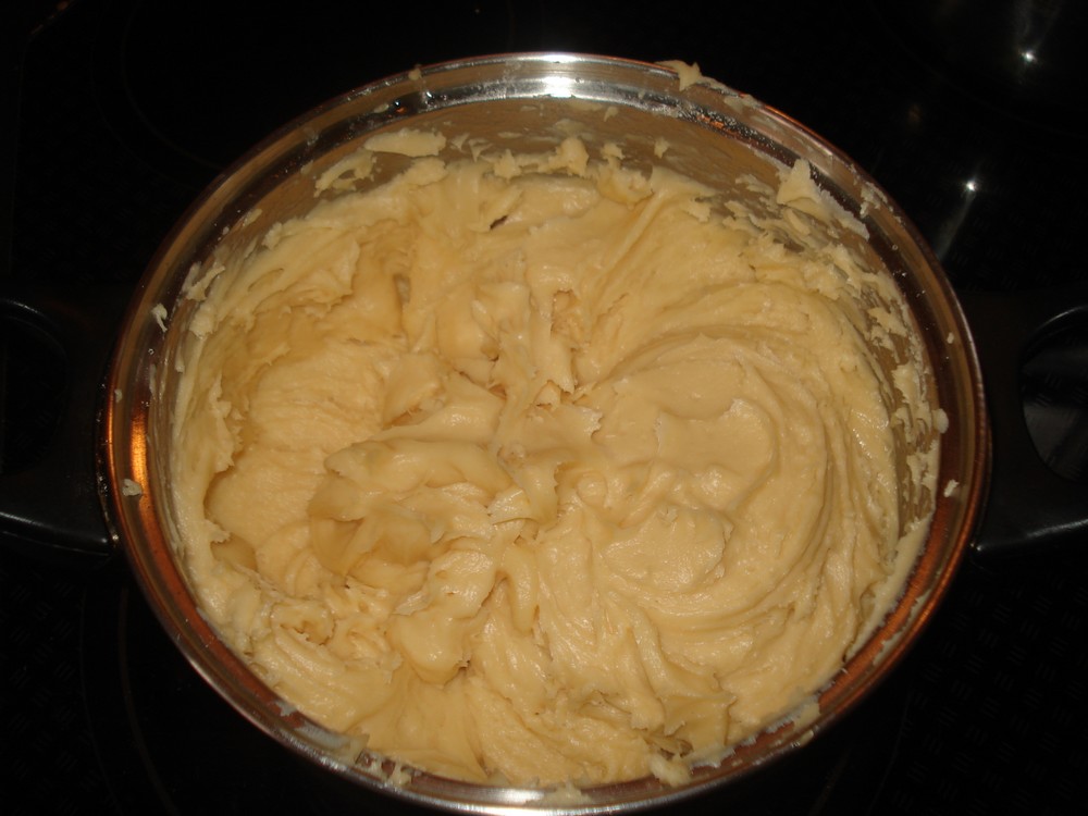 U toplo tijesto dodajte jaja, jedno po jedno. Miješajte dok tijesto ne postane glatko, gusto i jednolično.