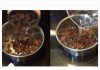 Posebno umiješajte sjeckane orahe, urme i smokve. Suvo grožđe nije potrebno sjeckati, samo ih potopite na neko vrijeme u vruću vodu da omekšaju. Sve pomešati sa brašnom pa lagano sa snegom od belanca.
