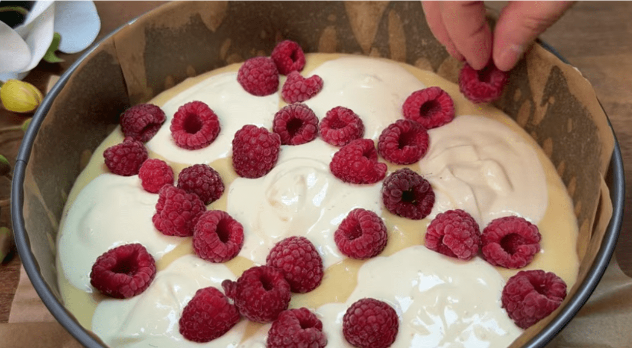 Za pripremu ovog kolača potrebni su osnovni sastojci koje većina već ima u kuhinji. Osnova se pravi od jaja, šećera, mlijeka i ulja, uz dodatak brašna i praška za pecivo koji daju potrebnu strukturu. Poseban sloj čini kremasti nadjev od svježeg ili krem sira, koji kolaču daje sočnost i bogatstvo okusa. Na kraju se dodaje bobičasto voće poput malina, koje unose svježinu i blagu kiselkastu notu, savršeno balansirajući slatkoću.