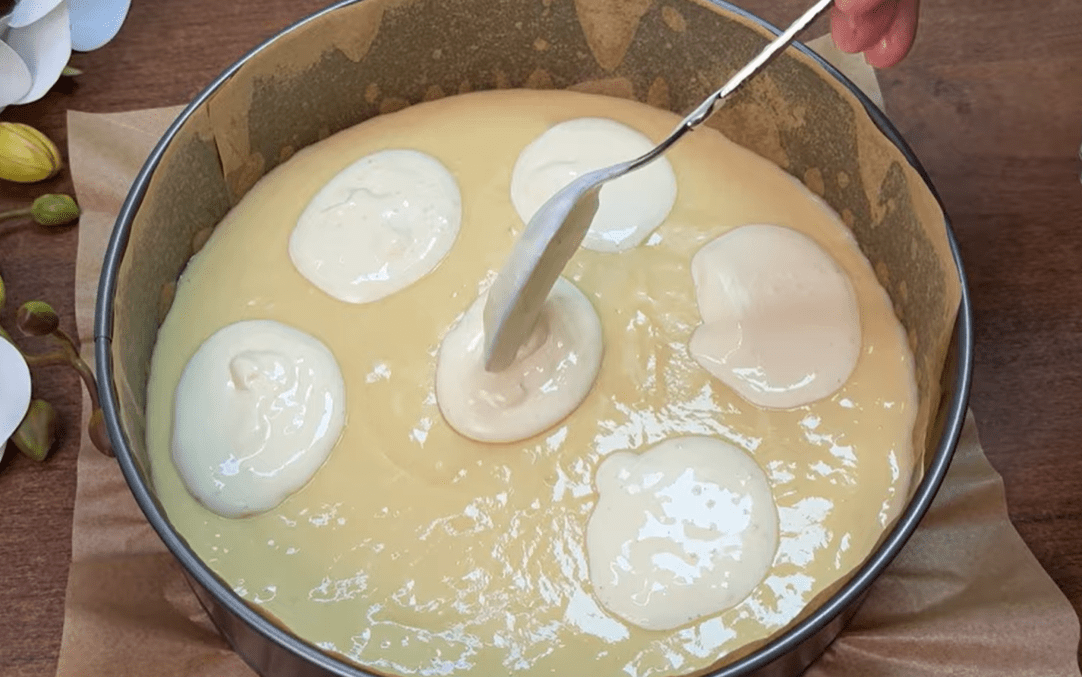 U posebnoj posudi priprema se kremasti sloj od sira, jajeta i šećera, koji se zatim pažljivo raspoređuje preko tijesta. Na kraju se preko svega pospe smrznuto bobičasto voće, bez potrebe za odmrzavanjem.