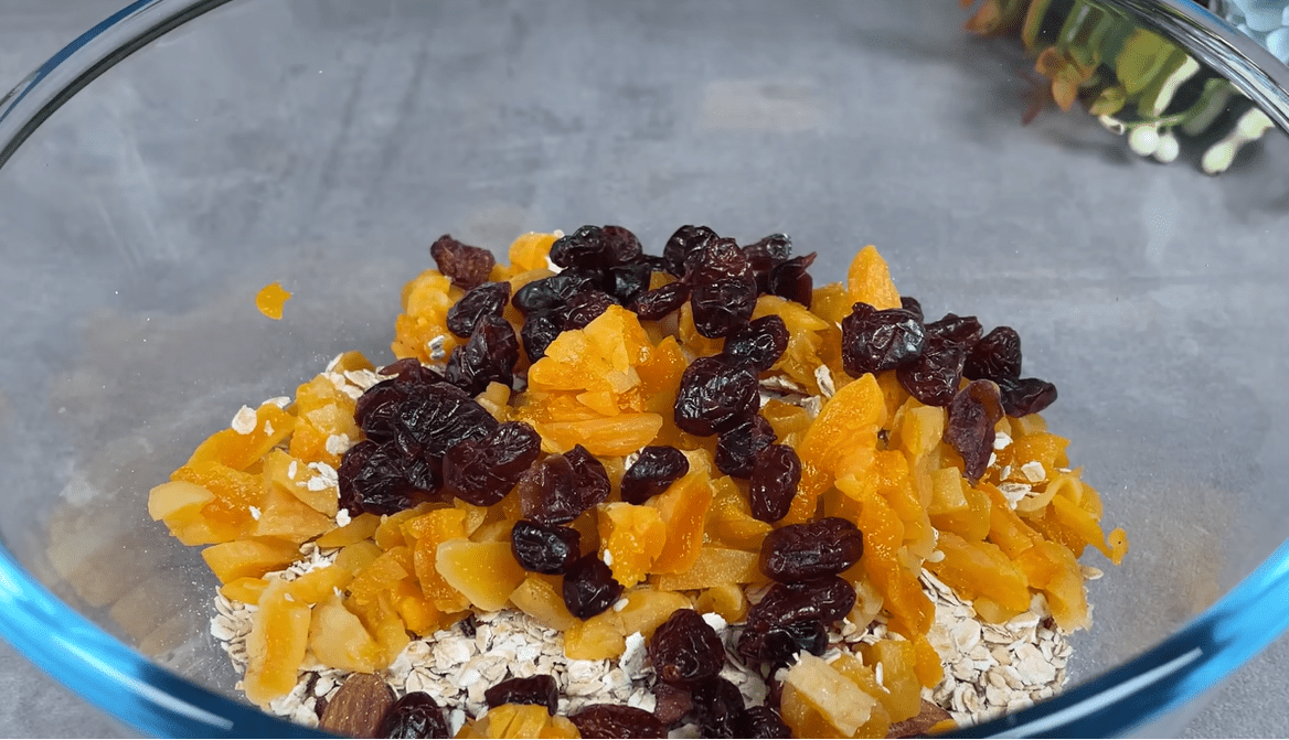 Najprije temeljito isperite hurme, grožđice, brusnice i suhe kajsije pod mlazom hladne vode. Nakon toga ih prelijte čistom hladnom vodom i ostavite da se namaču 15 do 20 minuta kako bi omekšali.