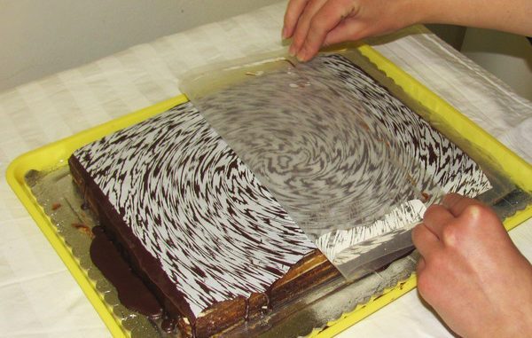 Ostavite jelo da se hladi u hladnjaku najmanje trideset minuta prije nego što pažljivo uklonite foliju. Bitno je da glazura zadrži dovoljnu debljinu jer će se tanka glazura odvojiti od torte zajedno s folijom.
