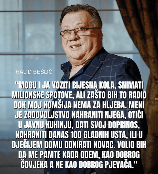 Ova vijest je šokirala sve naše čitaoce, od malih klinaca do starijih, nema ko ga nije volio. Njegovi hitovi ostavili su neizbrisiv trag u našim životima. Samo jednom se ovakav čovjek rađa. Ti si bio melem za moje uši, samo su neki od komentara naših pratitelja. Bosna i Hercegovina se oprašta od jedne od svojih najcjenjenijih ličnosti. Halid Bešlić, legendarna ikona narodne muzike i istinsko oličenje narodnog duha, preminuo je u 72. godini života, ostavljajući neizbrisiv trag na generacije svojim izuzetnim glasom.