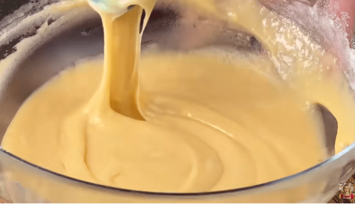 Priprema tijesta: U zdjeli za miješanje pomiješajte jaja i šećer, mutite dok ne dobijete laganu i pahuljastu teksturu. Umiješajte otopljeni maslac, dobro promiješajte. Postupno prosijte brašno i prašak za pecivo, nastavljajući miješati dok ne dobijete glatku smjesu. Konzistencija bi trebala biti malo gusta, ali tekuća.