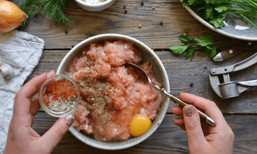 Potrebni sastojci: Mljevena piletina – 1 kilogram; Pileća jaja – 2 velika; Pereci – 60 grama; Češnjak – 2 češnja, mljevena; Sol – 1 čajna žličica (5 grama); Mljeveni crni papar – 1/2 žličice (2 grama); Svježi timijan – 1 žlica (5 grama) ili alternativno, 1 žličica osušenog timijana; Vlasac – 1 srednji, sitno nasjeckan; Maslac – 1 žlica (15 grama); Maslinovo ulje – 1 žlica (15 mililitara). Za pripremu krumpira: