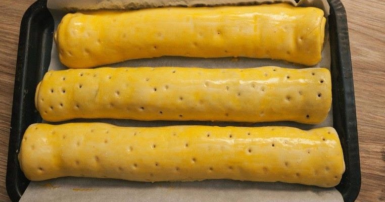 Izbockajte štrudle i stavite ih u hladnjak da se hlade 30 minuta. Na kraju ih lagano premažite lagano umućenim žumanjcima.