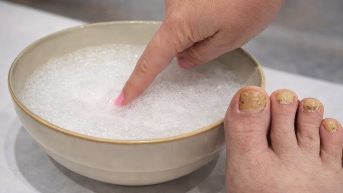 Potopite zahvaćene nokte u pripremljenu tečnost i držite ih oko 15–20 minuta. Ako tretirate stopala ili veću površinu, preporučuje se da smjesu razrijedite u većoj količini vode (oko 2 litre tople vode).