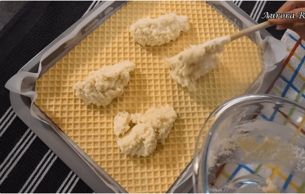 Smjesu rasporediti preko lista oblande i peći u rerni zagrejanoj na 180°C (360°F) oko 10–15 minuta, dok blago ne porumeni.