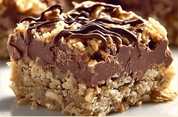 Završite sa smesom od ovsa tako što ćete preostali deo nežno rasporediti preko čokoladnog fila, lagano pritiskajući. Za dodatni dodir sofisticiranosti, prelijte odozgo sačuvanom smesom od čokolade.