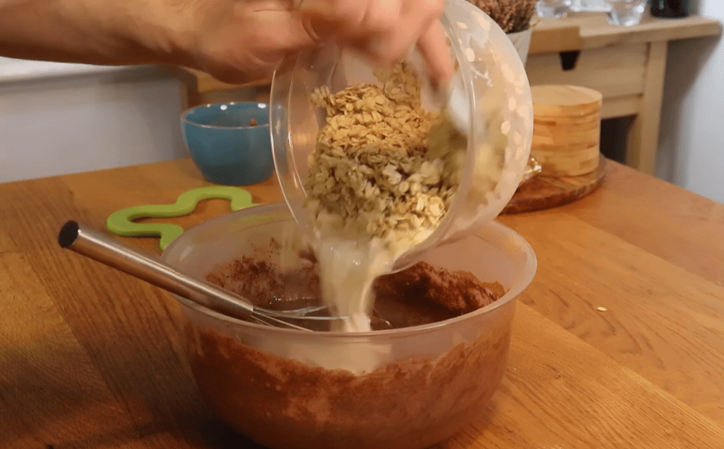 Sklonite šerpu sa vatre i dodajte ekstrakt vanile. Nakon toga, dobro umešajte ovsene pahuljice, vodeći računa da se svi sastojci dobro sjedine.