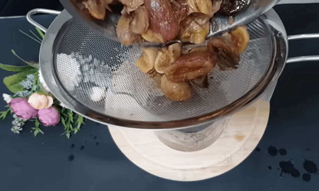 Procedite smesu kroz finu cediljku, vodeći računa da nežno pritisnete voće kako biste izvukli najpuniju aromu. Ostavite da se malo ohladi pre serviranja.