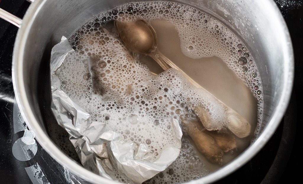 Uronite ove kuglice od aluminijske folije u kipuću vodu. Nakon toga, stavite pribor za jelo koji pokazuje ružne mrlje i gubi sjaj.